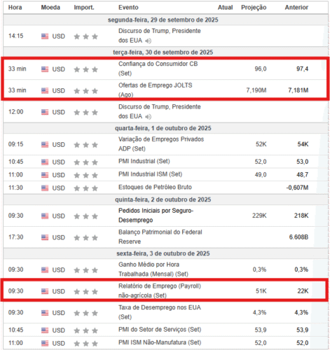 Do ponto de vista macroeconômico, a agenda da semana é bastante relevante. Na terça-feira teremos a divulgação dos JOLTS, que mede a oferta de empregos nos Estados Unidos, e na sexta-feira acontece a divulgação do payroll, o relatório mais importante do mercado de trabalho americano. Esses dados vêm em um momento em que o Federal Reserve já iniciou cortes na taxa de juros, e o discurso do presidente Jerome Powell tem reforçado a necessidade de manter a inflação controlada sem perder a força do mercado de trabalho. Isso significa que cada novo dado sobre emprego ou inflação ganha ainda mais peso e pode influenciar diretamente os rumos do mercado financeiro e, consequentemente, do Bitcoin.